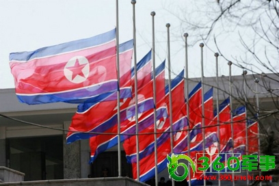 朝鲜举行中央追悼大会纪念金正日逝世100天,图为朝鲜平壤金日成广场降半旗致哀。