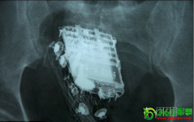 X射线扫描显示,手机被深深地塞进了直肠里。