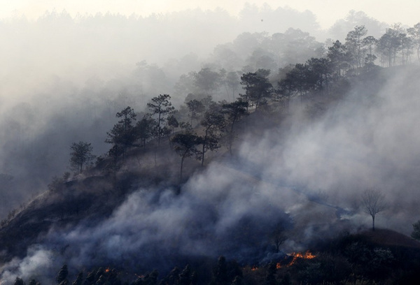 2月28日,云南昆明市宜良县阳宗海林场小白龙林区发生森林火情,由于天干风大,火势迅速蔓延至昆明—石林高速公路。目前,抢险灭火仍然在继续进行,火势得到有效控制,火场没有人员伤亡,火灾原因还在调查之中。