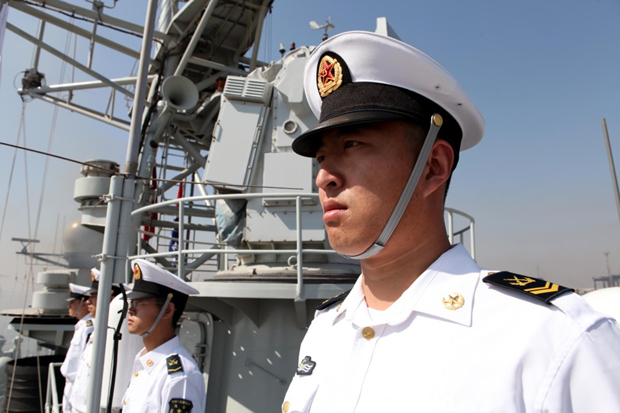 中国海军第十四批护航编队官兵整装依舷列队