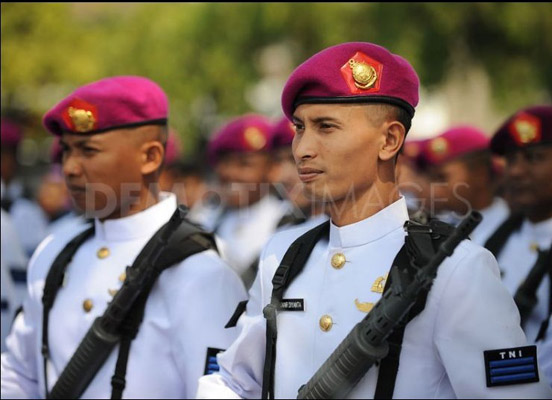 印尼太炎热 女兵阅兵时体力不支(1)(2)