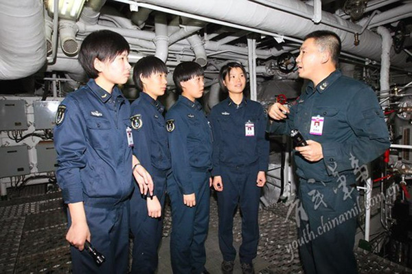 女兵们正在巡查。